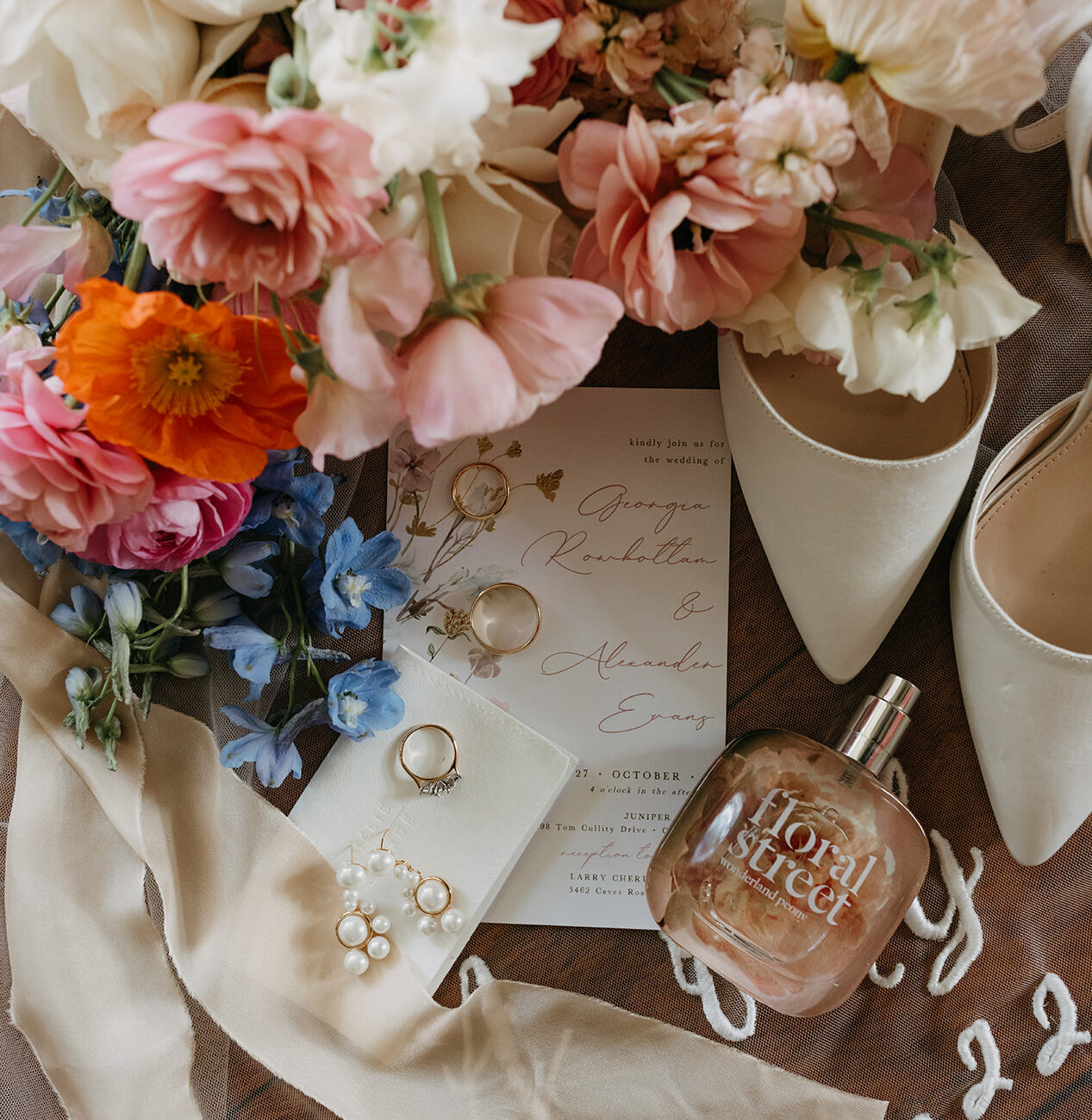I used the beautiful Flower garden and my husbands British background as inspiration and went for a classic style with a pastel floral English cottage garden look. The backdrops we had made this so easy to achieve and I felt we had to add very little to achieve this. I loved how it all turned out especially the florals and our invitations