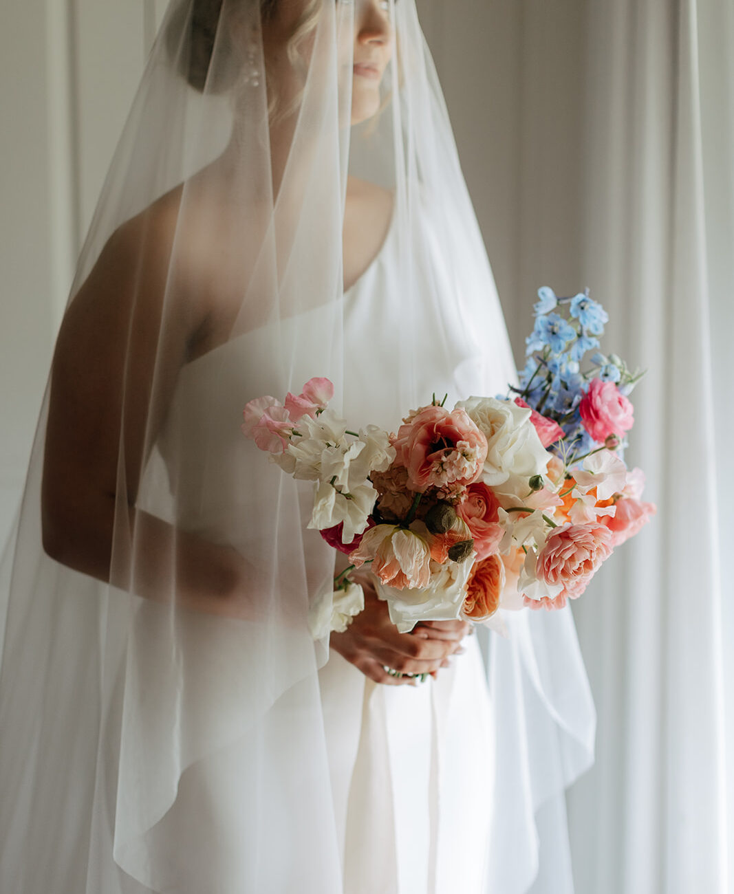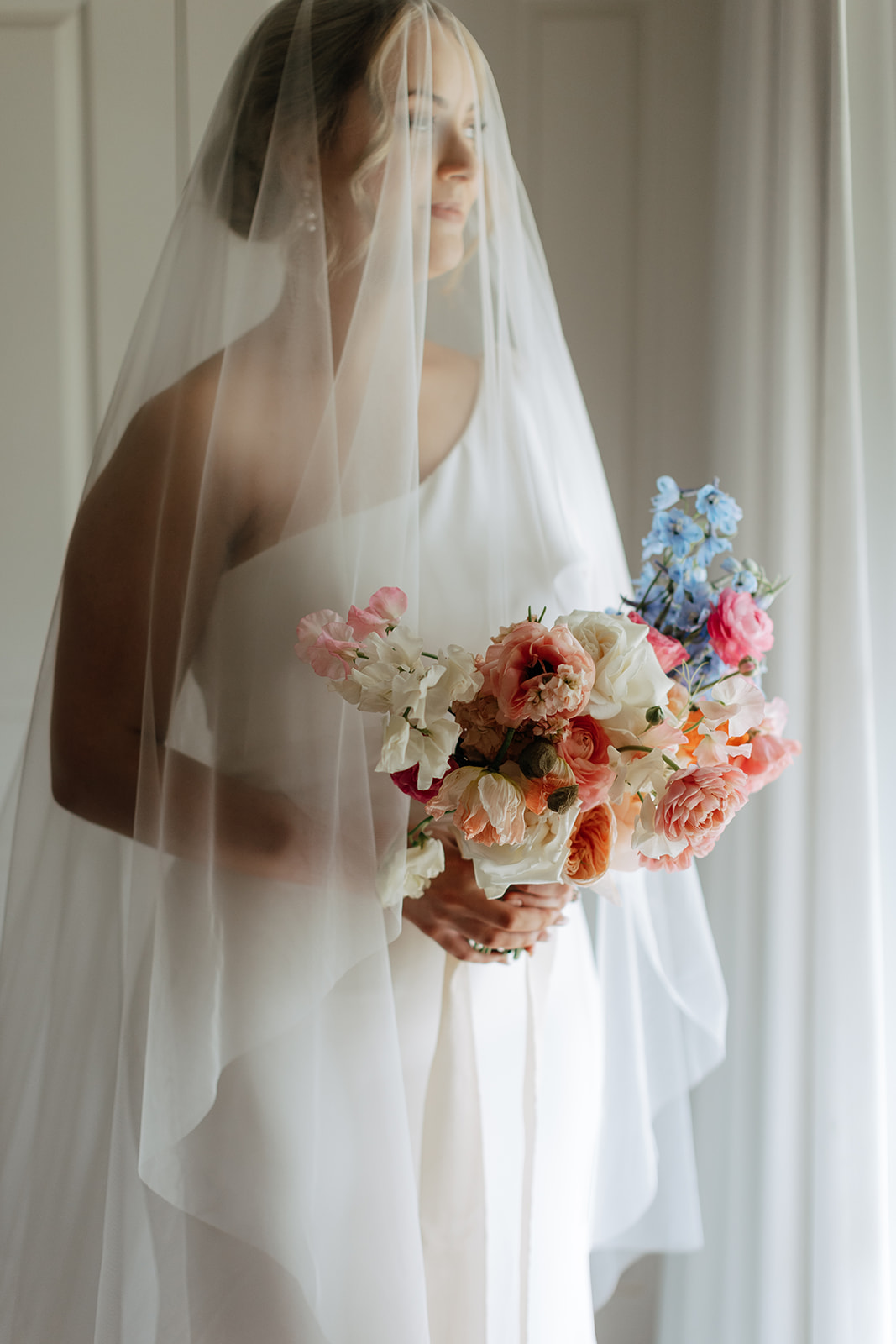 Bride’s Gown Madi Lane with custom embroidered veil from Kim Alpha Bridal