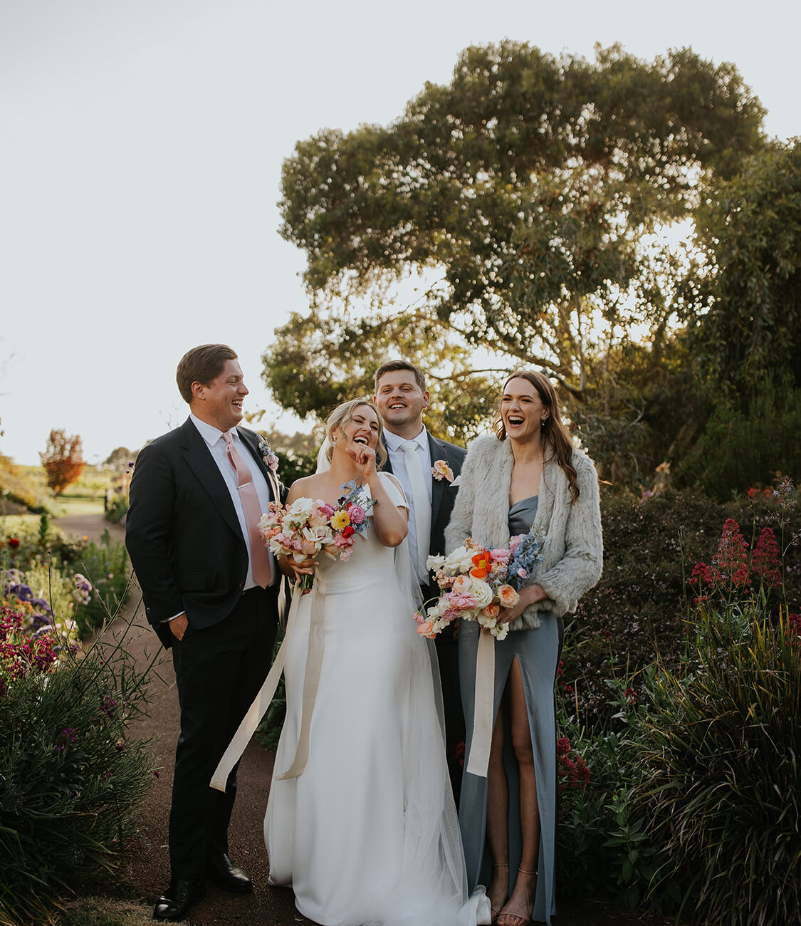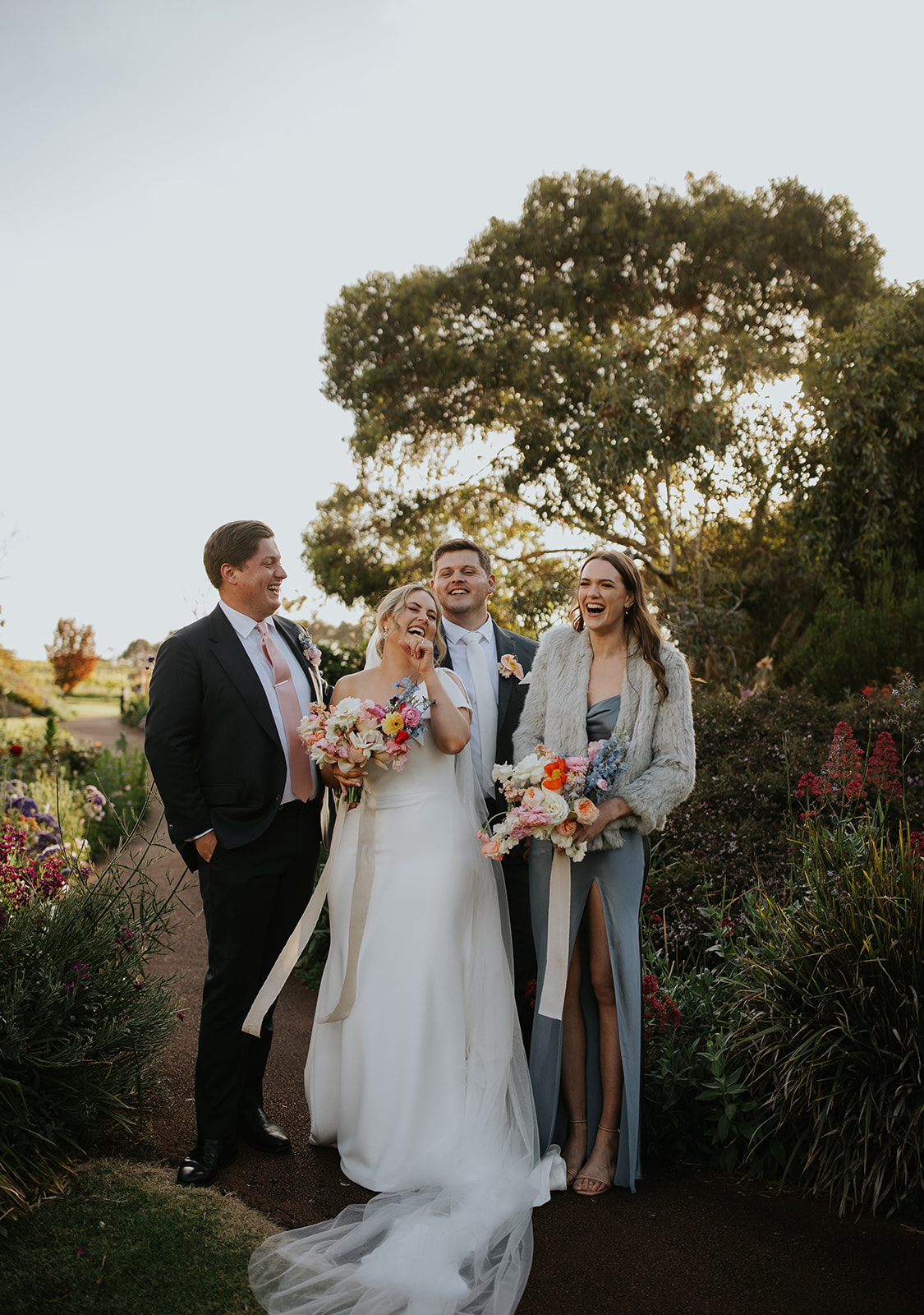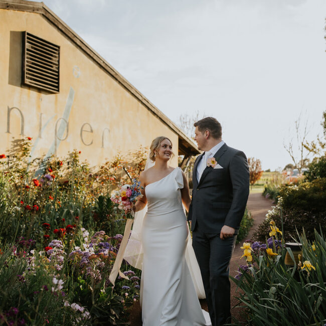 Alex and I always love visiting down south and visiting the wineries in the area so it wasn’t a surprise when he suggested a weekend getaway for us and some friends. We drove down like always and at a stop at a restaurant for lunch I was exclaiming how Alex would never be able to surprise me with an engagement ring and proposal because I didn’t think he could keep a secret. Little did I know that he had the ring in his pocket then! We stopped at one of our favourite wineries (Juniper) and were enjoying a tasting and alex kept trying to get me to go outside but I was enjoying tasting all the wines they had. Alex ended up pretending he broke the bathroom tap to pull the cellar door staff aside and get them in on the plan too! We eventually went outside to admire the garden when Alex got down on one knee finally! And it was very full circle as we got married in the same spot almost 3 years to the day!