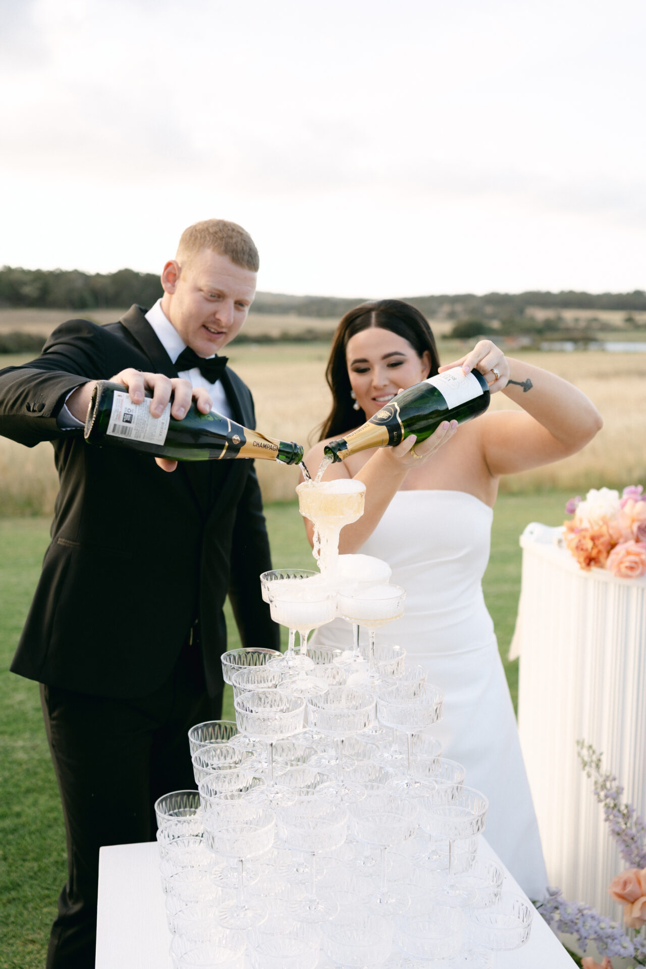If I could relive any day, it would be our wedding—it was perfect from start to finish. Some special touches included my mum and nanna giving me away, our siblings presenting our rings during the ceremony, and fun disco balls that everyone loved. We kept the energy up with an espresso martini hour at 9 p.m. and late-night beef and gravy rolls at 11 p.m. Plus, since we did our photos on-site at Tiller, guests could watch from a distance while enjoying a drink, which they appreciated.