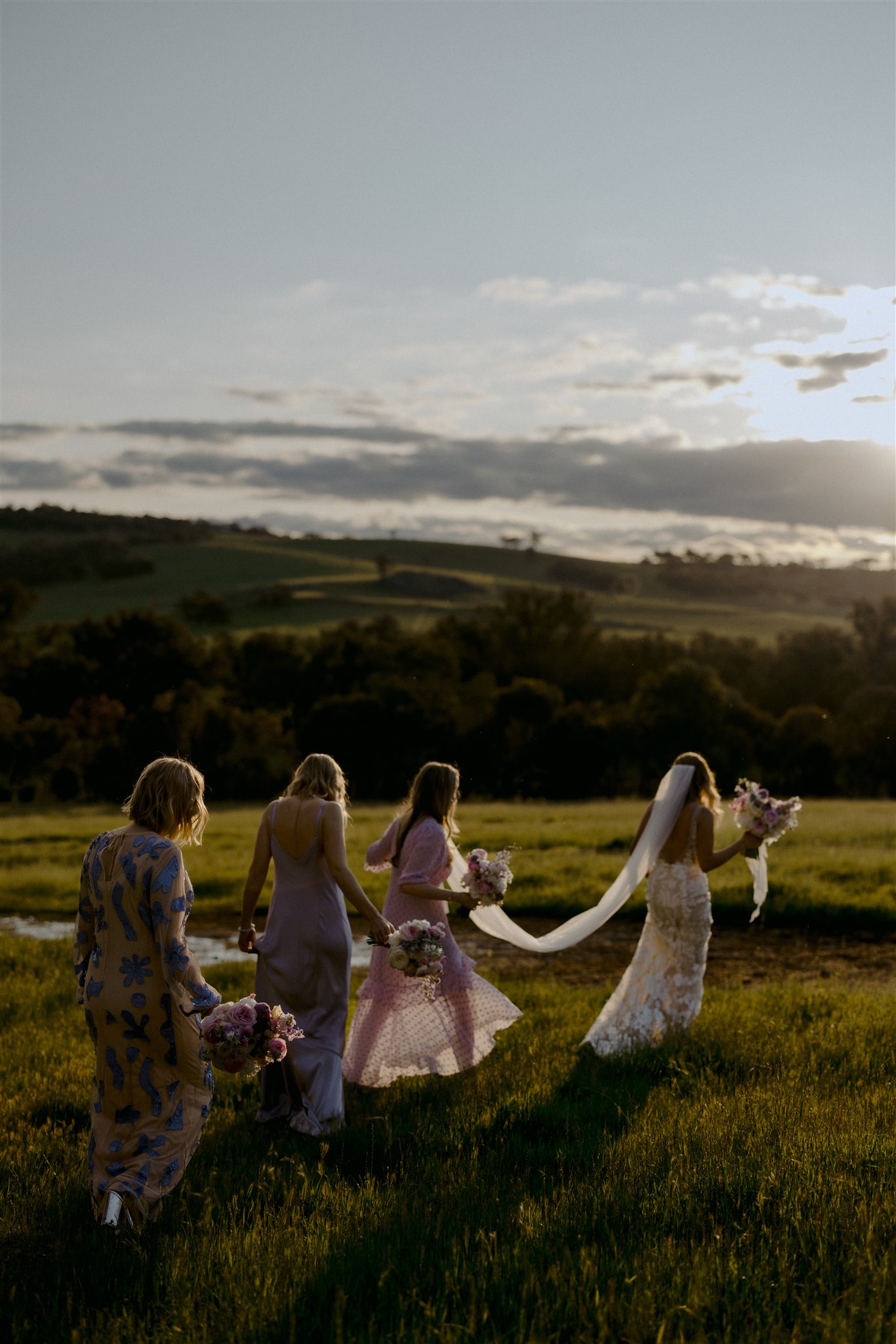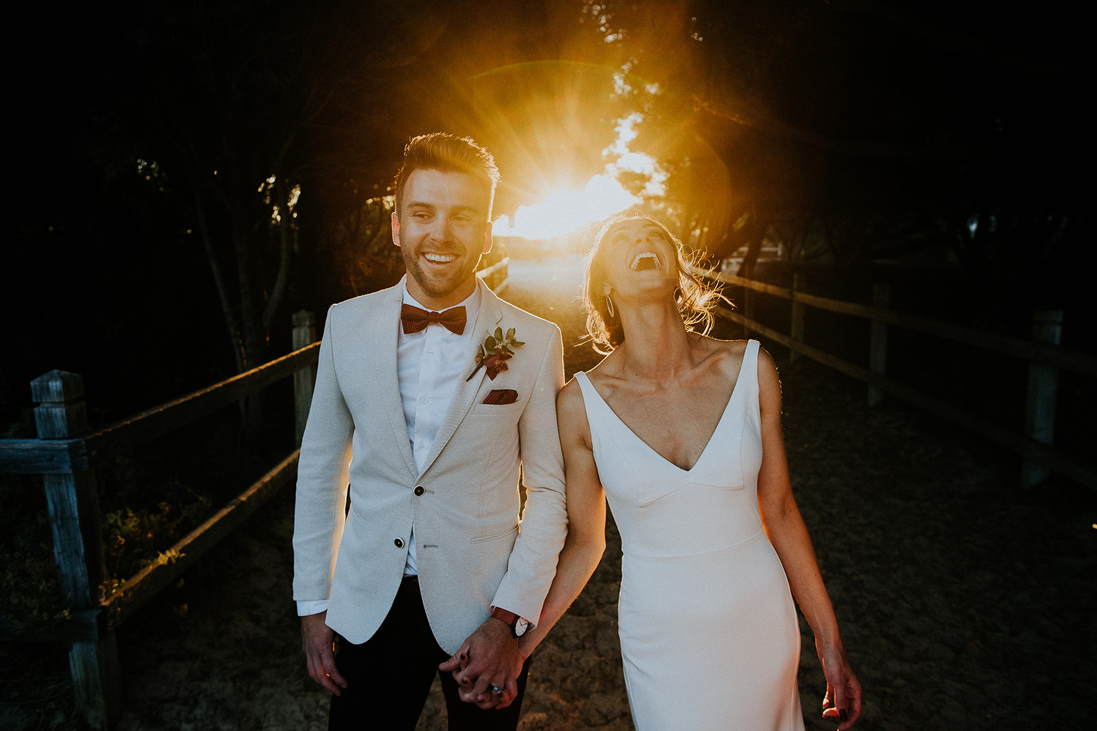 Photos by: Ben + Ebony (black and white bride in feature image), Shoot Me Jimmy (colourful florals), Kate Drennan (bride and groom sunset), Flossy (Bride and bridesmaids)