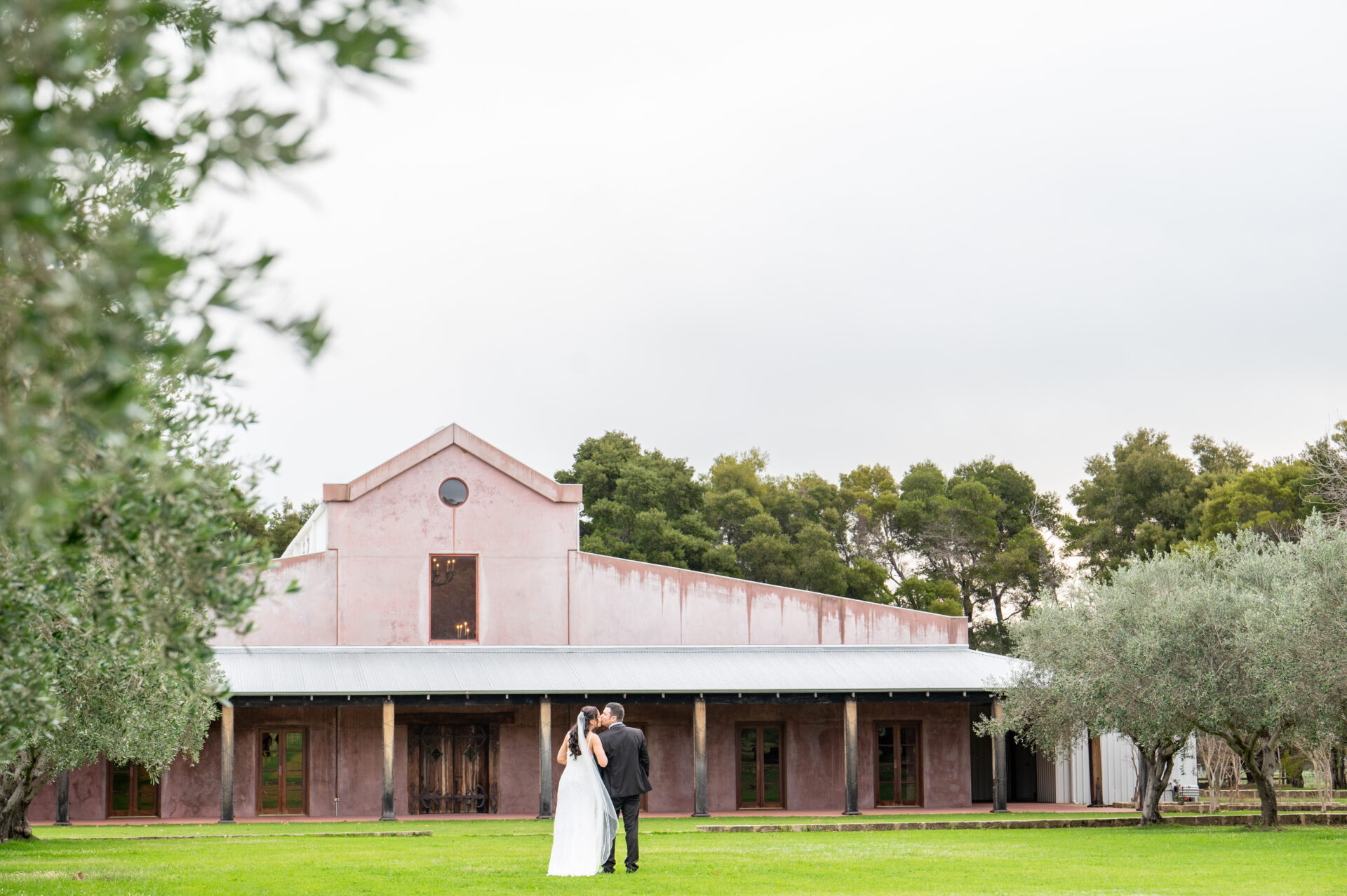 The barn features timber beams salvaged from the iconic Fremantle Wool Stores, rustic wooden doors, iron balustrades, and stunning chandeliers, creating a romantic and moody atmosphere for your celebrations.