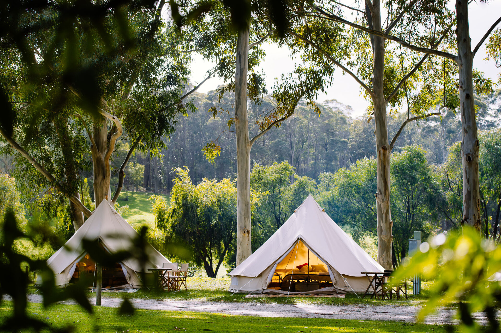 Our accommodation blends the charm of camping with the comfort of a hotel, creating a rustic yet upscale setting for your celebration. Glamping is an excellent alternative or complement to traditional hotel stays, providing a memorable experience for guests, especially amidst the stunning scenery of the Margaret River region. It also fosters a relaxed, communal atmosphere for post-wedding gatherings and offers a distinctive way to extend the festivities into nature.